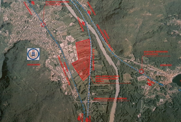 sulla mappa di Ornavasso, è un grosso trapezio rettangolo cui è stato tolto un angolo. È lì, su terreni oggi classificati come agricoli e in parte adibiti al florovivaismo che i sindaci di Ornavasso e Premosello Chiovenda vorrebbero veder eretto il nuovo, unico e baricentrico ospedale del Vco. Si trova nella parte meridionale del borgo della bassa Ossola, al di là della linea ferroviaria Domo-Novara (per il miglior accesso di auto e mezzi pesanti occorrerebbe pensare a un sovrappasso) e al di qua della superstrada (che ne è un confine). A fianco e alle spalle ci sono i capannoni della zona industriale. In tutto sono 215.000 metri quadrati che, dopo i lavori agli argini del Toce da Ornavasso e Gravellona, saranno rivisti nella classe di pericolosità idrogeologica, essendo stato ridotto il rischio di esondazione del fiume. Le foto e il video ripreso da un drone mostrano esattamente qual è il sito.