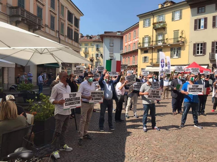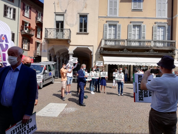 ha partecipato, questa mattina alle 11, al flash mob organizzato dalla Lega in piazza Ranzoni a Intra per protestare contro il governo Conte. C’erano i parlamentari Mirella Cristina (Forza Italia) ed Enrico Montani, c’era il capogruppo del Carroccio in Regione Alberto Preioni con il sindaco di Omegna Paolo Marchioni. Presente anche mezzo cda di Atc Piemonte Nord: il presidente Luigi Songa, coordinatore provinciale di Fratelli d’Italia (con lui il suo vice Damiano Colombo), e Marco Marchioni, consigliere nonché presidente dell’Ordine degli avvocati di Verbania. Distanziati e con le mascherine, i militanti del centrodestra hanno mostrato cartelli con slogan contro le politiche del governo, del quale auspicano le dimissioni.