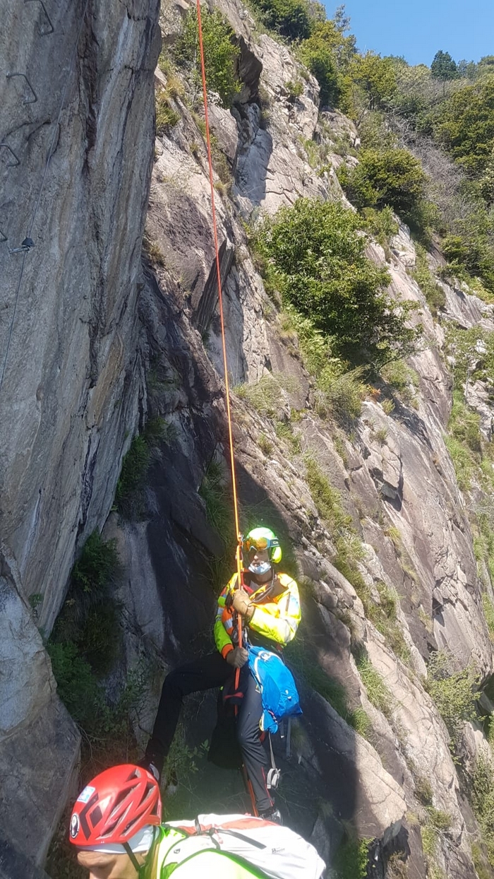 del Soccorso alpino hanno tratto in salvo, attorno alle 12 di oggi, una ragazza che s’era infortunata mentre arrampicava alla palestra di roccia di Baveno. Scivolata lungo la ferrata dei Picasass, è stata raggiunta da due volontari del Soccorso alpino che si trovavano sul posto e che hanno appreso dell’intervento della radio. Nel frattempo è intervenuta anche una squadra della stazione di Omegna. La ragazza è stata raggiunta in poco tempo e, imbragata, è stata issata sull’elicottero col verricello prima di essere portata in ospedale a Novara con un ginocchio fratturato.