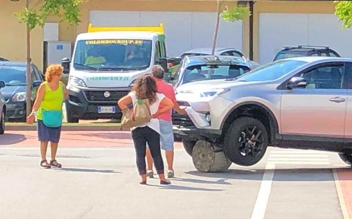 e l’auto ci è finita sopra, a… cavalcioni. Le tre immagini, scattate ieri pomeriggio nel parcheggio esterno della Lidl di Pallanza, mostrano il singolare incidente capitato allo sfortunato automobilista che, mentre circolava nel posteggio del supermercato, s’è trovato di fronte l’inaspettato ostacolo che, data la conformazione tondeggiante, è diventato una sorta di trampolino sopra il quale l’auto è salita per poi adagiarsi.