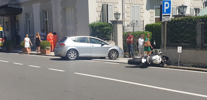 ed è stato trasportato dall’ambulanza del 118 all’ospedale di Verbania il 45enne motociclista che ha avuto, nel primo pomeriggio di oggi, un incidente stradale sulla statale 34 del Lago Maggiore, all’altezza dell’hotel Ghiffa. Poco dopo le 14,30, nel centro abitato, una Toyota immatricolata in Svizzera procedeva in direzione Verbania. Dovendo svoltare a sinistra nel parcheggio, il conducente ha rallentato e azionato la freccia, avvisando della manovra. Da dietro sopraggiungeva una moto di grossa cilindrata, una Bmw s1000rr. Il centauro non s’è fermato in tempo, ha toccato il veicolo che aveva di fronte ed è caduto a terra, procurandosi lievi lesioni. Sempre cosciente, è stato soccorso dai presenti in attesa dei sanitari. Sul posto è intervenuta la Volante della questura e un camion dei vigili del fuoco. I pompieri hanno messo in sicurezza il veicolo che perdeva carburante e ripulito la strada. La Bmw è stata poi prelevata dal carro attrezzi e portata a Verbania. Lievi disagi al traffico.