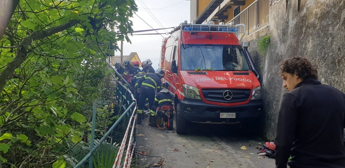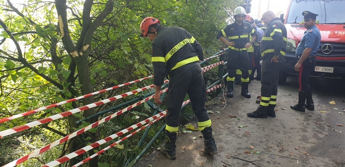 di una ventina di metri. Ha riportato ferite di media gravità, per le quali è stato trasportato dall’elicottero del 118 all’ospedale “Castelli” di Verbania, l’autista del camion che stamane, poco dopo le 8, è precipitato in un dirupo. Dipendente di una ditta che sta operando allo sgombero dei detriti della frana caduta sulla statale 34 venerdì, guidava il mezzo pesante nella stretta via per Cadessino, nell’omonima frazione che si raccorda con Rancone. Nel manovrare ha urtato con il cassone la barriera di metallo che funge da guardrail. Il camion ha sbandato ed è finito contro il parapetto, sfondandolo e precipitando sotto, in mezzo alla vegetazione. Subito sono stati chiamati i soccorsi. Vigili del fuoco, carabinieri e polizia sono accorsi insieme a personale medico. I pompieri si sono calati per imbragarlo e favorirne il prelievo con l’elicottero.