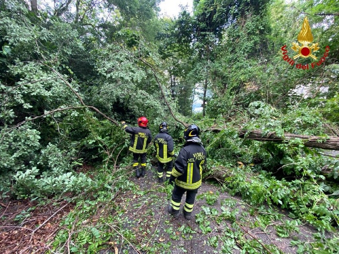 LUINO - 23-07-2022 -- Il violento temporale che ieri s’è abbattuto sul Verbano ha fatto danni, soprattutto sulla sponda lombarda. Numerosi sono stati gli interventi dei vigili del fuoco di Varese per piante abbattute e strade ostruite. La zona più interessata dal maltempo è stata la statale 394 del Verbano orientale tra Maccagno e Zenna. Nel territorio di Luino piante sono cadute in via Torretta, la strada che va ad Agra, rimasta interrotta a lungo.