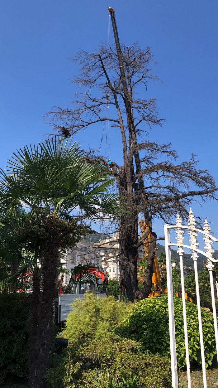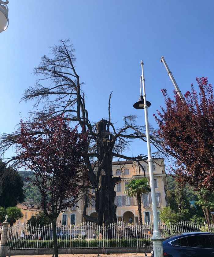 STRESA - 18-08-2022 -- Si sono concluse ieri le operazioni di rimozione del cedro dell’Himalaya di Villa Ducale, a Stresa. L’albero monumentale, dichiarato pericoloso dagli agronomi il mese scorso e oggetto di un’ordinanza di abbattimento del sindaco Marcella Severino per ragioni di incolumità pubblica, è stato tagliato ramo per ramo da una ditta specializzata, che poi ha ridotto il tronco. Ieri s’è lavorato alle radici.
