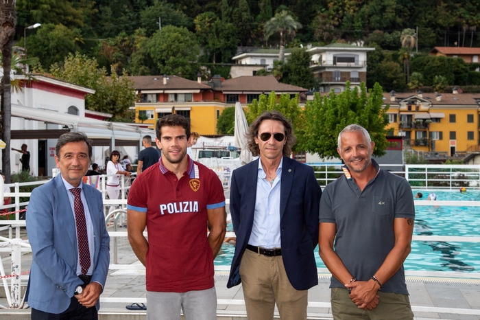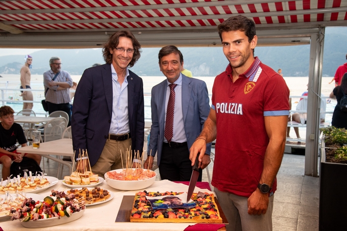 VERBANIA - 02-09-2022 -- Un brindisi e una fetta di torta “di bronzo” hanno salutato le due medaglie che il canoista verbanese Carlo Tacchini ha recentemente conquistato ai Campionati europei di canoa di Monaco, in Germania. Ieri a premiare il 27enne portacolori delle Fiamme Oro è stato il presidente della Società Canottieri Intra Doriano Galanti che, in sede, ha accolto l’olimpionico insieme all’assessore allo Sport Patrich Rabaini e al questore Luigi Nappi.