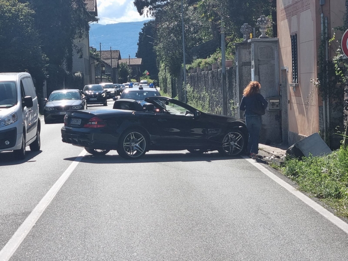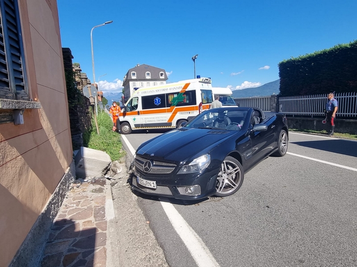 GHIFFA - 10-09-2022 -- Distratta o abbagliata da sole, ha perso il controllo dell’auto e s’è schiantata contro il muro. È questa la dinamica dell’incidente avvenuto attorno alle 15,40 di oggi sulla statale 34 del Lago Maggiore, appena dopo l’abitato di Ghiffa. All’altezza del chilometro 18+400 una Mercedes cabiorlet con a bordo due donne viaggiava in direzione di Verbania. Sul rettilineo in uscita dal centro abitato il veicolo ha urtato, con la parte anteriore destra, il muretto che protegge il rio sottostante, che è crollato. Danni al veicolo e lievi lesioni per una delle occupanti, visitata dall’ambulanza. Sul posto sono intervenuti i carabinieri.