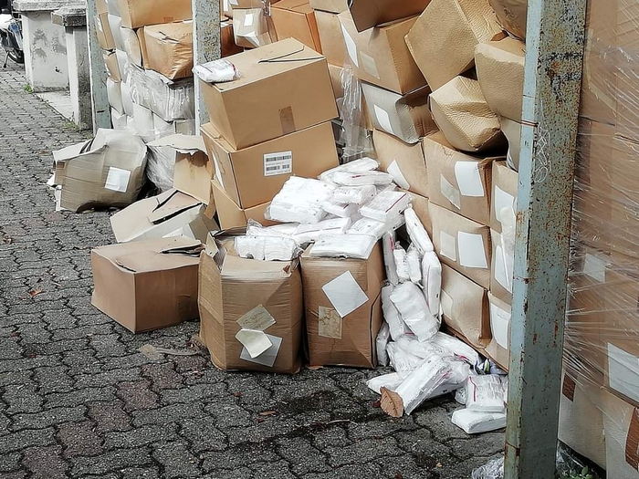 VERBANIA - 29-09-2022 -- Uno spreco. Le foto di cartoni e cartoni di mascherine ammonticchiati all’esterno del “Cobianchi” l’ha postata su Facebook un elettore verbanese che, domenica, s’è recato alle urne nel seggio allestito all’interno dell’istituto superiore. Nell’accedere all’aula adibita alle votazioni è passato dal cortile interno scoprendo che migliaia e migliaia di mascherine, ancora imballate, sono esposte agli elementi atmosferici, una parte ricoverata sotto una tettoia e un’altra nemmeno protetta. È pur vero che, fortunatamente, la pandemia è arretrata e in classe non è più necessario indossare la mascherina, ma è anche vero che non è obbligatorio lasciar deteriorare il materiale in eccesso.