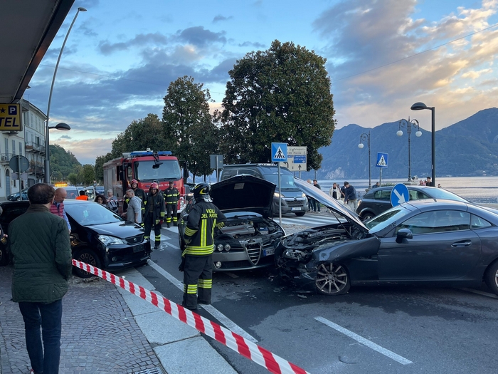 VERBANIA - 01-10-2022 -- Sono tre i veicoli -quattro i feriti, tutti lievi- coinvolti nell’incidente stradale accaduto nel tardo pomeriggio di oggi in corso Mameli, a Verbania. Sul lungolago di Intra, all’altezza del bivio per via De Bonis, una Mercedes diretta a Ghiffa, per cause al vaglio dei carabinieri ha invaso la corsia opposta colpendo due automobili: un'Alfa Romeo e una Seat Nell’impatto un’occupante dei mezzi urtati è rimasta intrappolata nell’abitacolo, tanto che è stato necessario l’intervento dei vigili del posto. Sul posto anche due ambulanze del 118.