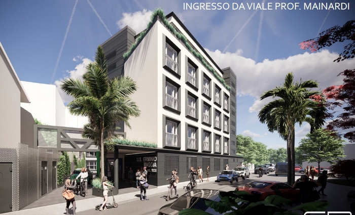 STRESA - 21-11-2022 -- Un edificio avveniristico ma con linee e colori tradizionali e armonizzati al contesto, ecologico di classe energetica massima, al top per gli allestimenti tecnologici laboratoriali, progettato dal basso secondo le esigenze raccolte tra docenti e studenti. È questo il nuovo “Maggia”, l’edificio che, dopo la demolizione attuale, sarà ricostruito da zero in continuità col passato ma con uno sguardo rivolto al futuro. Il progetto definitivo ha subito poche modifiche rispetto a quello già approvato. Gli elementi caratterizzanti sono la piazza centrale che, interna all’edificio, raccorderà gli ambienti e sarà un punto di ritrovo per gli studenti; e il tetto sfruttato come laboratorio bar.