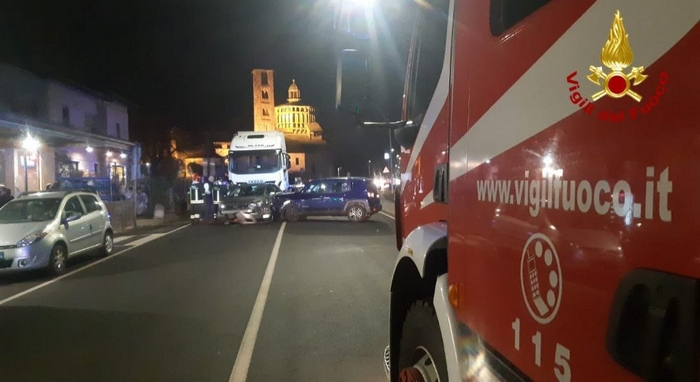 VERBANIA - 21-12-2022 -- Sono due i feriti dell’incidente stradale avvenuto attorno alle 18 di ieri in viale Azari, a Pallanza, all’altezza della chiesa di Madonna di Campagna. Proveniente da nord viaggiava, in direzione Pallanza, la Jeep Renegade condotta da un 52enne che, per cause al vaglio della polizia municipale -non si esclude un malore- ha invaso la corsia opposta urtando frontalmente la Opel Corsa al volante della quale c’era un uomo di 70 anni di Verbania. L’impatto ha spinto quest’ultima vettura all’indietro, contro un camion che sopraggiungeva. Ingenti i danni ai mezzi e ferite per i due automobilisti, trasportati in ambulanza, uno al Dea del “Castelli”, l’altro a quello del “San Biagio”. Viale Azari è rimasto chiuso al traffico per circa un’ora. Sul posto anche i vigili del fuoco che hanno rimosso i detriti, pulito e messo in sicurezza la strada.