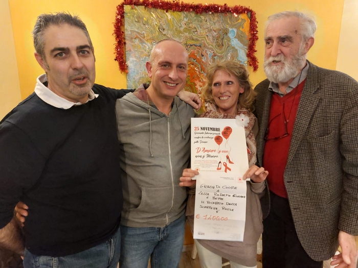 CANNOBIO - 29-12-2022 -- Ammonta a 1.400 euro il contributo donato alla Croce Rossa di Cannobio, frutto dell’iniziativa di alcuni cannobiesi in occasione della Giornata internazionale di contrasto alla violenza sulle donne. Realizzando artigianalmente scarpette rosse (il simbolo della campagna) in legno e distribuendole a offerta, è stato raccolto il denaro che i promotori Lorella Grieco, Rodolfo Agosti e Giuseppe Caricchia hanno consegnato nei giorni scorsi al presidente della Cri dell’Alto Verbano, Massimo Brugnano.