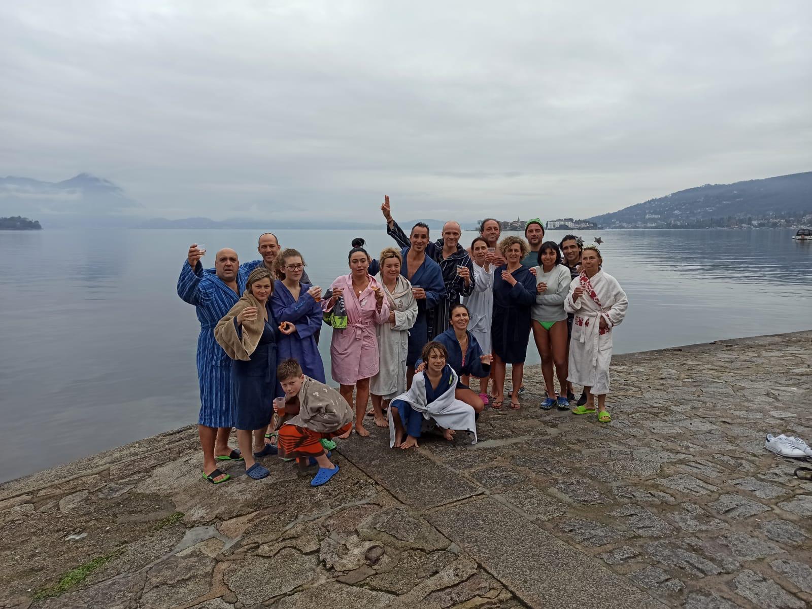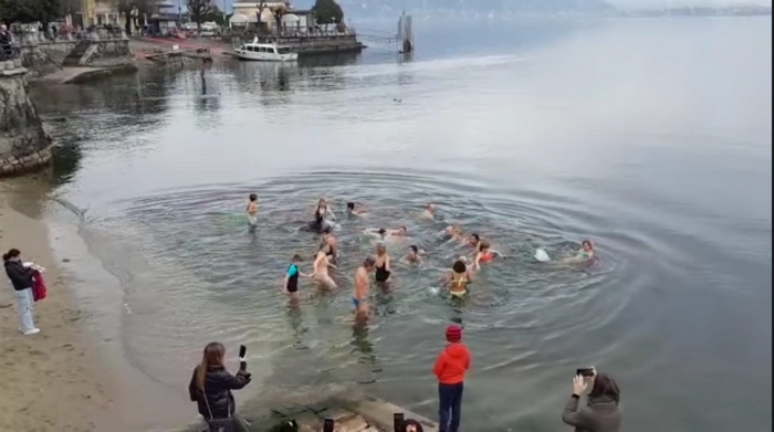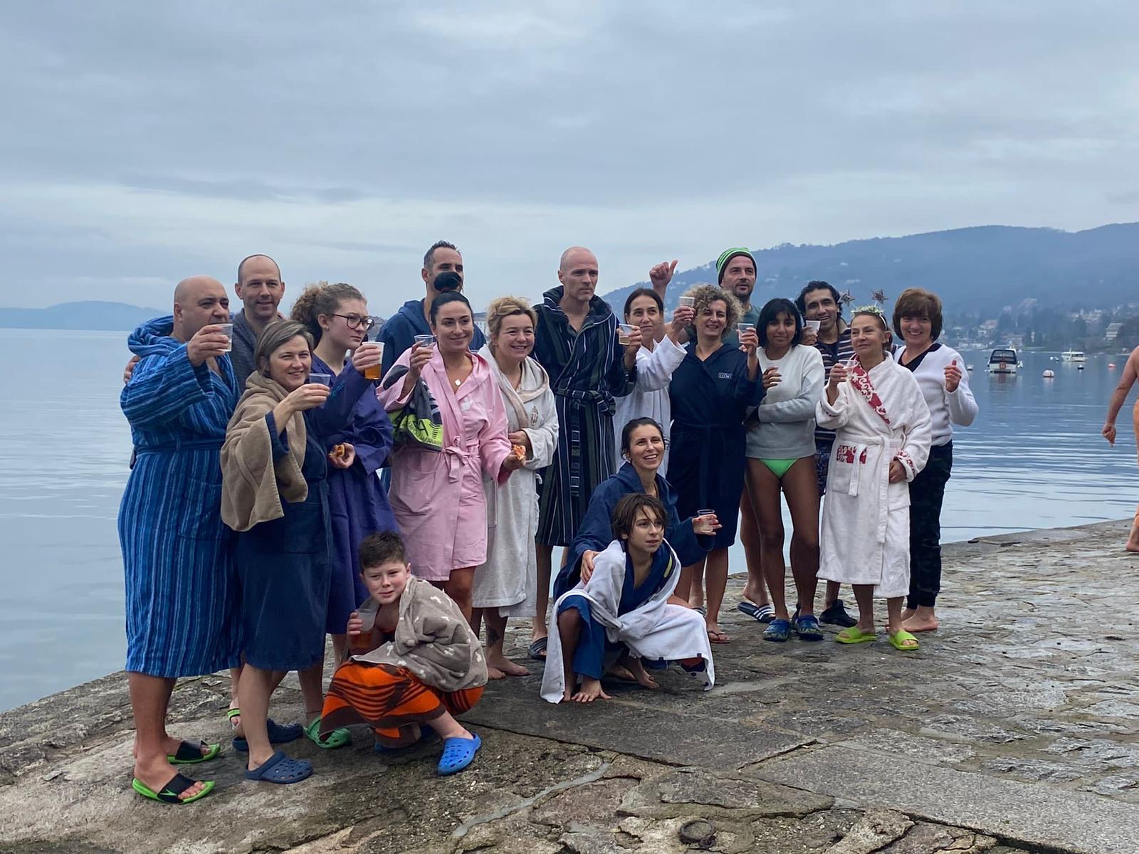 BAVENO - 02-01-2023 -- In diciotto, puntuali all’ora di pranzo, hanno risposto ieri all’appello per il benvenuto goliardico al 2023 che, ormai da dieci anni, si tiene sul lungolago di Baveno. Nata quasi come scommessa, la proposta di tuffarsi nelle acque gelide del Lago Maggiore è diventata, col tempo, un’abitudine e una tradizione che nemmeno la pandemia ha sconfitto. “In tre o quattro siamo presenti da sempre – spiega Alberto Avveduti, tra i promotori dell’iniziativa –. Di anno in anno il numero cresce ed è un modo piacevole di iniziare l’anno”.
