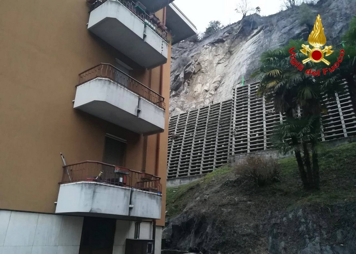 LUINO - 05-01-2023 -- Undici famiglie sono state precauzionalmente evacuate, stamane a Luino, dopo che -per la seconda volta in pochi mesi- un condominio è stato interessato da una frana. In via Creva il costone roccioso che incombe su una grande palazzina s’era già in parte sgretolato lo scorso aprile, costringendo le autorità a intervenire. La posa delle reti paramassi ha solo in parte risolto il problema, che s’è presentato nuovamente oggi, quando la caduta di alcuni massi ha interessato la parete rocciosa. Le barriere ne hanno contenuta la maggior parte, ma alcuni massi sono finiti al suolo, riempendo un bacino di contenimento e colpendo la facciata del condominio.