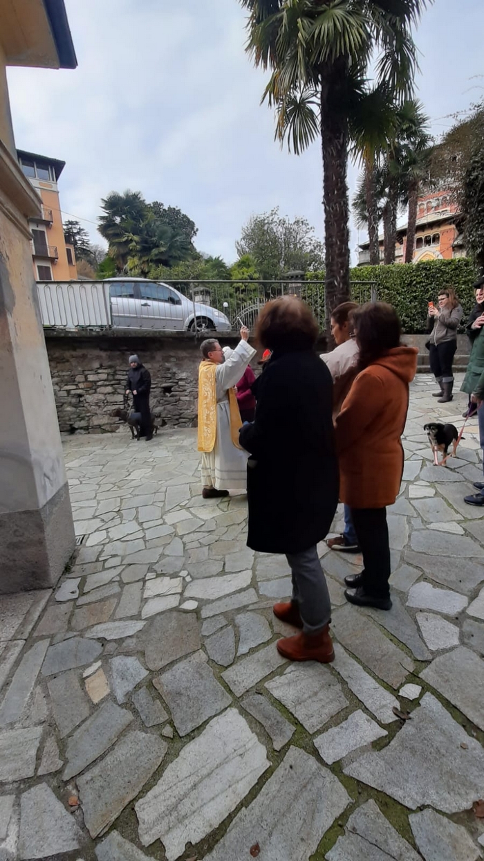 STRESA - 23-01-2023 -- (e.p.) Ieri mattina a Vedasco, frazione di Stresa, è stata celebrata la festa di Sant’Antonio Abate, protettore degli animali. Il parroco don Gianluca Villa, al termine della celebrazione della messa, come da tradizione ha benedetto sul sagrato gli animali, intervenuti con i loro proprietari, tra i quali anche il sindaco Marcella Severino con la sua cagnolina, e l’assessore Carla Gasparro. Infine, per tutti è stato distribuito il pane benedetto. Una tradizione che prosegue da nove anni grazie all’impegno dei frazionisti amanti degli animali.