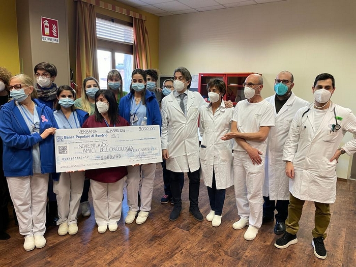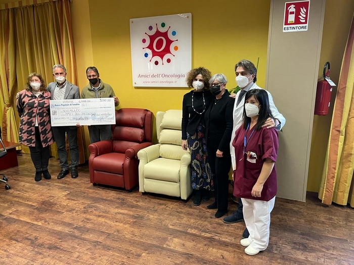VERBANIA - 03-02-2023 -- Per il suo cinquantesimo compleanno s’era fatto un regalo benefico, una raccolta di fondi a favore degli Amici dell’Oncologia. È in questo modo che Eros Buratti, patron della Casera, ha ottenuto i 9.000 euro con i quali sono state acquistate sette nuove poltrone per il reparto di Oncologie dell’ospedale di Verbania. Non sono solo un complemento d’arredo, ma per i pazienti rappresentano soprattutto il comfort durante i trattamenti chemioterapici che vengono somministrati per via endovenosa. Nonostante i progressi scientifici abbiano permesso di avere cure orali, per talune neoplasie è ancora necessario ricorrere all’infusione, lenta e ripetuta del tempo, di farmaci che hanno pesanti effetti per il corpo del paziente. La cerimonia di consegna è avvenuta lunedì in ospedale, nella sala che porta il nome della compianta dottoressa Annalisa Luraschi, alla presenza dei vertici dell’Asl, delle autorità, degli Amici dell’Oncologia e di Eros e Cristina Buratti. Un’ottava poltrona andrà al “San Biagio” di Domodossola, acquistata grazie al contributo di Elena Tonelli.