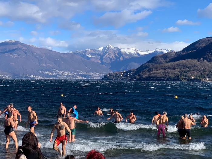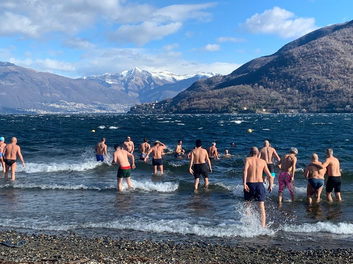 CANNOBIO - 04-02-2023 -- Vento a parte, le temperature miti (sopra la media stagionale) hanno favorito la sfida all’inverno che, stamane, 25 ardimentosi hanno portato a termine immergendosi nelle acque del Lago Maggiore. Il “tuffo nel lago” di Cannobio è diventata negli anni una sorta di tradizione per gli organizzatori, l’assessorato allo sport e il comitato gli Amici del tuffo che, supportati dai Sub Cannobio, dal Maggiore diving e dalla locale sezione della Croce Rossa, stamane hanno visto la manifestazione tagliare il traguardo dei 18 anni di vita.