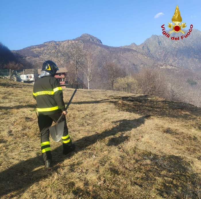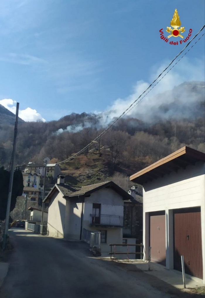 GURRO - 03-03-2023 -- Bruciano i boschi e i pascoli della Val Cannobina. Dalla tarda mattinata di oggi i vigili del fuoco, coadiuvati dai volontari Aib, sono al lavoro nel comune di Gurro per spegnere l’incendio scoppiato in quota, all’alpe Bacium, a sud del monte Colmine. Sul posto sono dislocate tre squadre del comando provinciale con personale Dos (direttore operazioni di spegnimento) e altrettante di volontari, in supporto ai quali è arrivato un elicottero antincendio dei pompieri, che attinge acqua dalla vasca montata al campo sportivo di Gurro.
