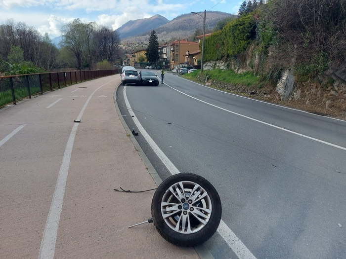 VERBANIA - 26-03-2023 -- Tre auto coinvolte e altrettante persone ferite. Sono lievi le lesioni del doppio incidente frontale avvenuto nel tardo pomeriggio di oggi sulla statale 34, a Fondotoce. Appena dopo il Canton Magistris, una Lancia Ypsilon condotta da un uomo di mezz’età proveniente da Suna e diretta a Gravellona Toce ha invaso in curva la corsia opposta, urtando nella parte posteriore sinistra una Ford Fiesta che sopraggiungeva nell’altro senso. L’utilitaria ha scarrocciato per circa cento metri, arrestandosi dopo aver colpito una Seat Ibiza anch’essa in ingresso in città.