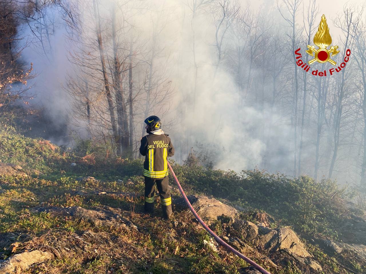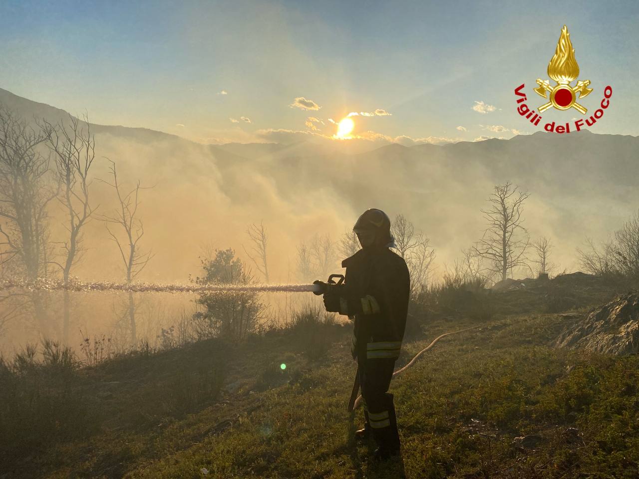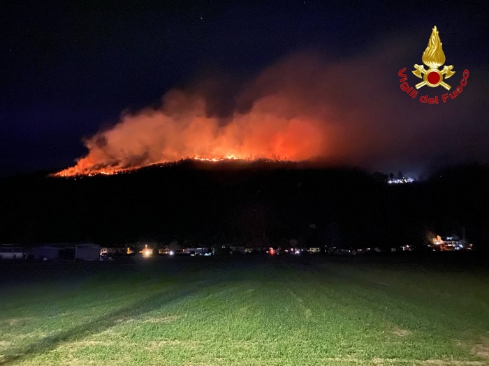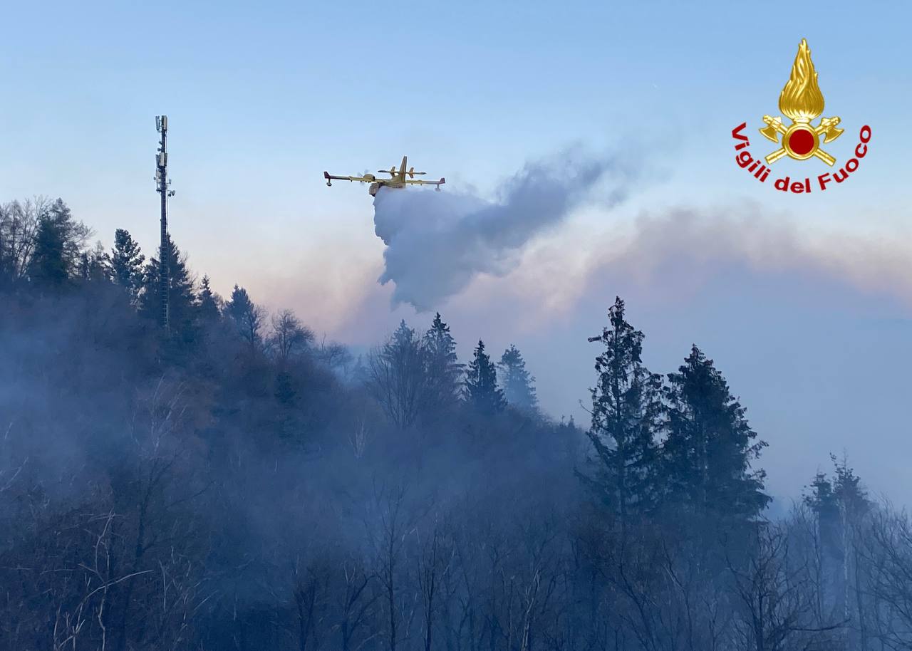 MONTEGRINO VALTRAVAGLIA - 28-03-2023 -- Brucano i boschi del Verbano. La siccità e il forte vento che spira da ieri hanno favorito il vasto incendio scoppiato a Montegrino Valtravaglia, nell’entroterra varesino. Nel primo pomeriggio l’allerta è partita dalla località chiesa di San Martino, dove sono state inviate due squadre dei distaccamenti di Luino e Laveno Mombello. Il vento ha alimentato le fiamme, che hanno interessato oltre dodici ettari di bosco di una zona impervia, difficile da raggiungere. Da Albenga ha raggiunto il Verbano un Canadair della flotta nazionale, che ha sparso 55.000 litri di schiuma ritardante. I lanci sono stati sospesi col calar del buio. Sono stati mobilitati una cinquantina di volontari dell’Aib regionale uno dei quali, attorno alle 21, è caduto lussandosi una spalla e finendo in ospedale.