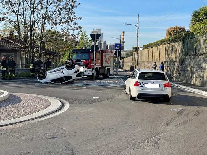 VERBANIA - 27-04-2023 -- I danni fisici sono stati contenuti ma i danni sono ingenti e la viabilità è andata in tilt. È questo il bilancio dell’incidente stradale avvenuto stamane in viale Azari, a Pallanza. all’incrocio con via Olanda, dove da poco è stata ridisegnata la rotatoria, proveniva dal ponte del Plusc una Dacia condotta da una donna residente a Verbania di origine ucraina. L’automobilista non ha dato la precedenza a una Bmw serie 1 che, appena lasciata via Olanda, aveva impegnato la rotatoria per dirigersi verso Pallanza. A seguito dell’impatto, avvenuto nella parte posteriore, la Dacia s’è cappottata, restando ruote all’aria. Sul posto sono intervenuti vigili del fuoco, Polstrada, 118 e, per gestire la vaibilità, la polizia municipale. Il ripristino del traffico ha richiesto parecchio tempo.