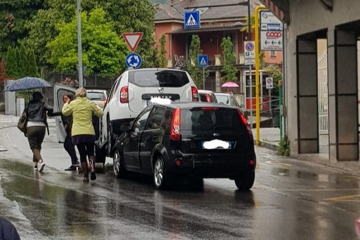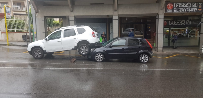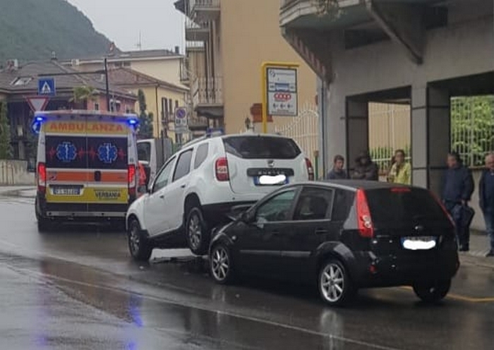 VERBANIA - 20-05-2023 -- Nessun ferito e danni ai veicoli. E' questo il bilancio del singolare incidente stradale avvenuto attorno alle 18 di oggi in piazza Cavour, a Intra. Una Ford Fiesta diretta in corso Cairoli, a una decina di metri dall'imbocco della rotonda non s'è accorta della Dacia Duster che la precedeva. Le è arrivata dietro senza arrestarsi, urtandola. Nell'impatto il mezzo che stava davanti, anziché finire spinto in avanti, è stato letteralmente sollevato da terra, finendo con le ruote posteriori poggiate sul cofano della Ford, sospese a circa un metro da terra.