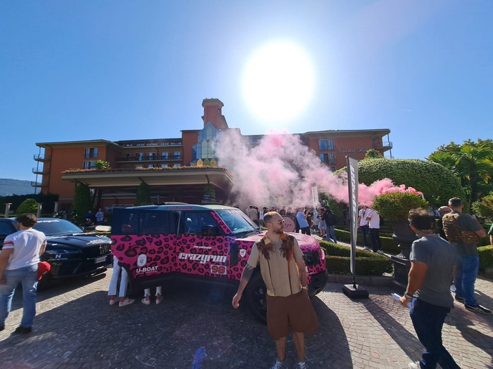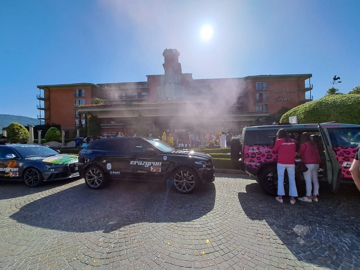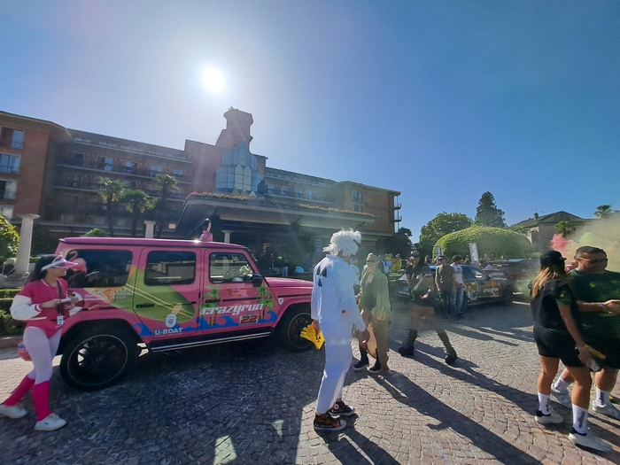 BAVENO - 26-05-2023 -- È scattata stamane dal piazzale dell’hotel Dino di Baveno l’edizione 2023 (la numero 11) della Crazyrun, prova motoristico-turistico di regolarità e goliardia. Aperta a vetture d’alta gamma –Lamborghini, Audi, Ferrari, McLaren, Porsche, Maserati, Alpine, Jaguar, Mercedes, Bmw, Lotus... e c’è persino una Delorean– vede al via poco meno di 100 equipaggi il cui scopo, oltre a completare le prove che prevedono anche una sorta di enigma da risolvere alla partenza, è fare a gara nell’abbigliamento e nella mise più estrosa. Non mancano i premi per la miglior livrea, l’estetica, il travestimento tematico…