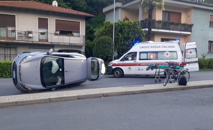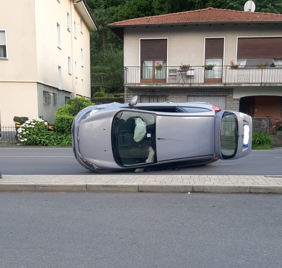 CANNOBIO - 07-06-2023 -- Ferite lievi per le persone coinvolte nell’incidente stradale accaduto nel pomeriggio di oggi a Cannobio, sulla strada che porta in Val Cannobina. Una Ford ha tamponato una Lancia Ypsilon e, con la ruota anteriore destra, ha sormontato la posteriore sinistra della vettura che la precedeva, provocando il ribaltamento su un fianco. Sul posto il 118.