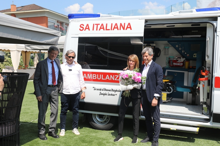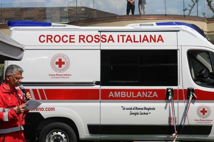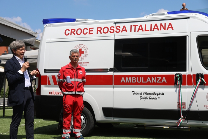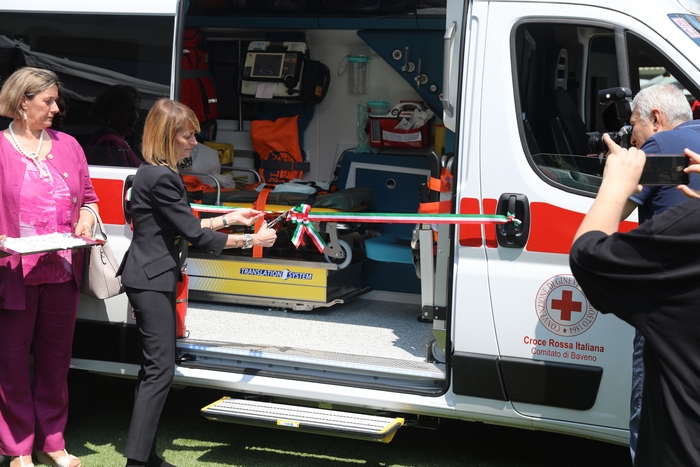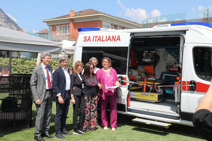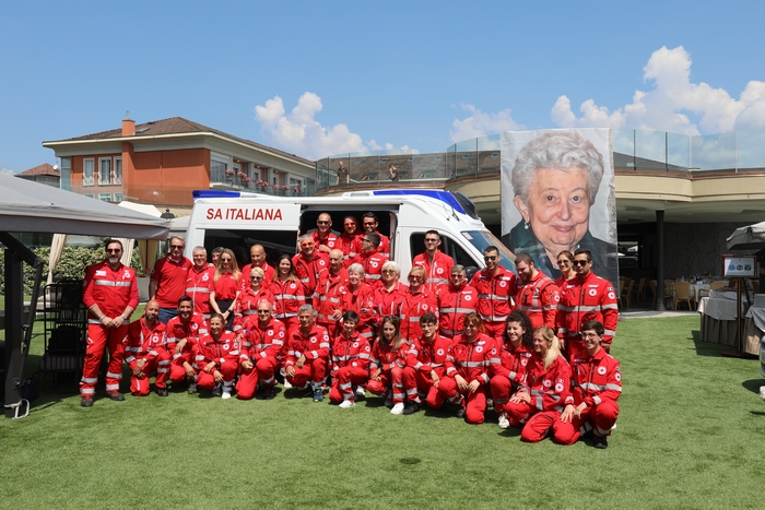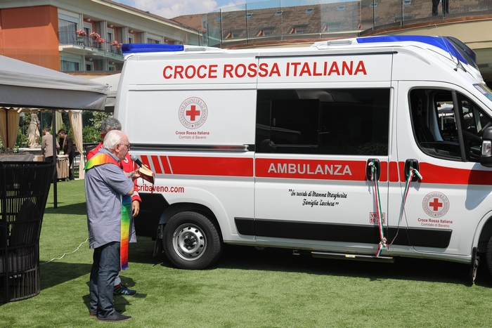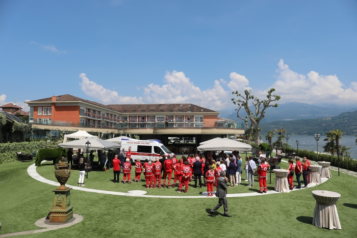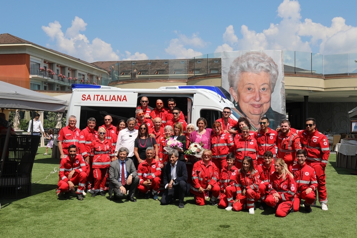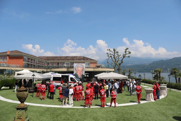 BAVENO - 12-06-2023 -- In ricordo di mamma Margherita. La domenica al Grand hotel Dino di Baveno è stata dedicata alla figura di Margherita Zacchera, mamma degli albergatori Antonio, Massimo, Maria Gabriella e Andrea, scomparsa lo scorso inverno. Figura centrale nel gruppo alberghiero bavenese, che ha vissuto in prima persona e contribuito a far crescere con un impegno quotidiano fatto di presenza fisica e lavoro, a lei è stato dedicato il nuovo giardino con piscina dell’hotel. Ma il suo ricordo è stato portato avanti anche grazie al contributo che la famiglia ha dato alla locale sezione della Croce Rossa nell’acquisto di un’ambulanza che è stata simbolicamente consegnata alla Cri bavenese nella cerimonia tenutasi al grand hotel, alla presenza dei familiari di Margherita, delle autorità e dei volontari.