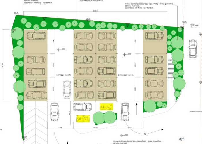 In questi giorni è partita la procedura per individuare l’impresa che effettuerà i lavori e realizzerà il progetto commissionato dalla società partecipata Stresa Servizi all’architetto verbanese Autilio D’Andria. Sarà un parcheggio “leggero”, che costerà (da progetto, salvo ribassi o risparmi) circa 400.000 euro per 49 stalli (attualmente sono poco più d’una ventina) distribuiti su due piani. La struttura portante è prefabbricata di metallo per accogliere i due livelli di sosta. Il primo, quello a raso all’altezza del lido, sarà sormontato da un secondo, raggiungibile con una rampa di circa il 20% di pendenza. Il rivestimento delle facciate sarà in corten, materiale approvato dalla Soprintendenza che l’ha giudicato compatibile con il delicato contesto paesaggistico del golfo Borromeo. Per mitigare l’impatto visivo il progettista, che già aveva lavorato negli anni ‘90 al lungolago di Pallanza con l’illustre botanico Pietro Hillebrand, ha scelto alcune essenze locali o che richiamano il patrimonio verde del lago: camelie, corniolo giapponese e cipresso.