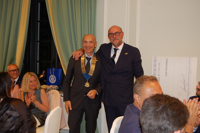 STRESA – 28-06-2023 -- Passaggio di consegne tra presidente e uscente e presidente entrante per il Rotary club Pallanza-Stresa. Nella serata che, allo Sky bar dell’hotel La Palma di Stresa ha chiuso l’anno rotariano, il domese Maurizio Bianchi ha passato il testimone a Paolo Lerede, così come il verbanese Luca Gnecco ha ceduto l’incarico a Samuele Saba nella sezione giovani, il Rotaract.