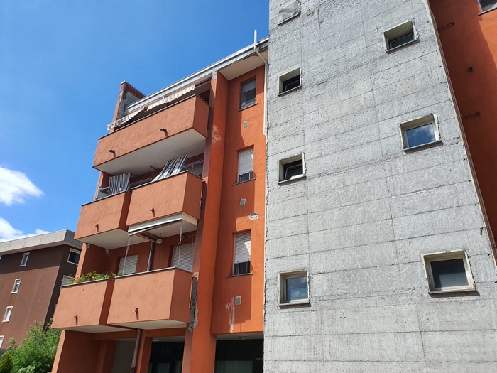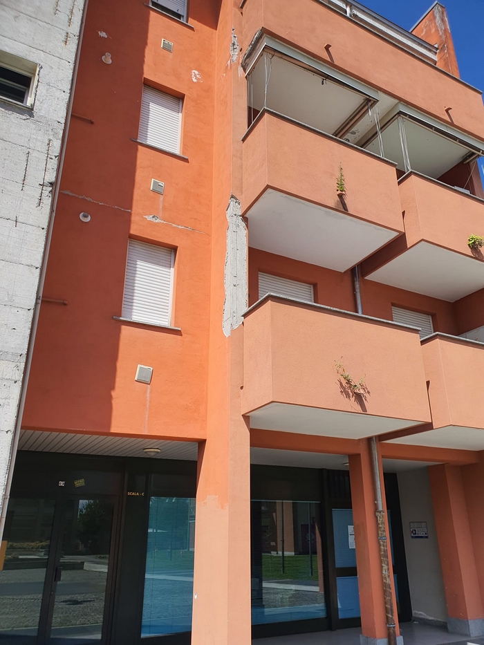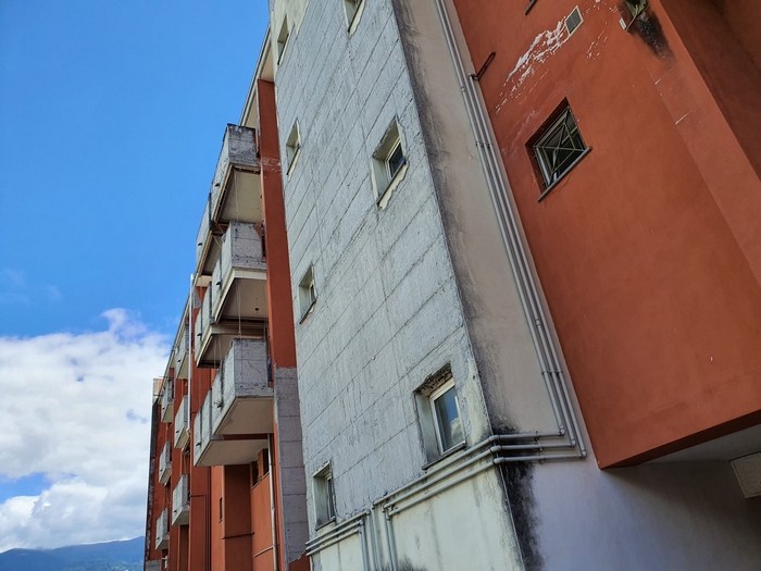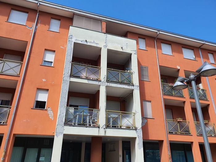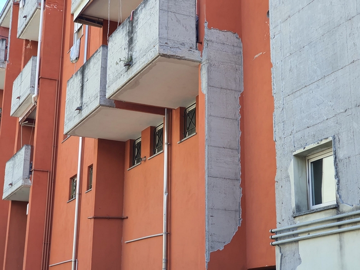 VERBANIA - 30-07-2023 -- Le facciate sono quasi del tutto scrostate e, in alcuni punti, si intravede anche il ferro dell’armatura cementizia. Sono anni che i residenti delle case popolari al civico 27 di piazza delle Città Gemellate lamentano lo stato di conservazione della stecca di edifici -tre piani fuori terra più uno di box, tre scale per 24 appartamenti- che si trovano nella parte orientale della piazza.