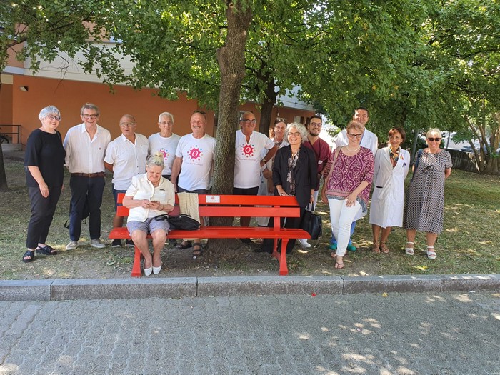 All’esterno dell’ospedale, sul viale d’ingresso, all’ombra delle piante gli Amici dell’Oncologia hanno collocato una panchina rossa simbolo della lotta alla violenza di genere e contro le donne.