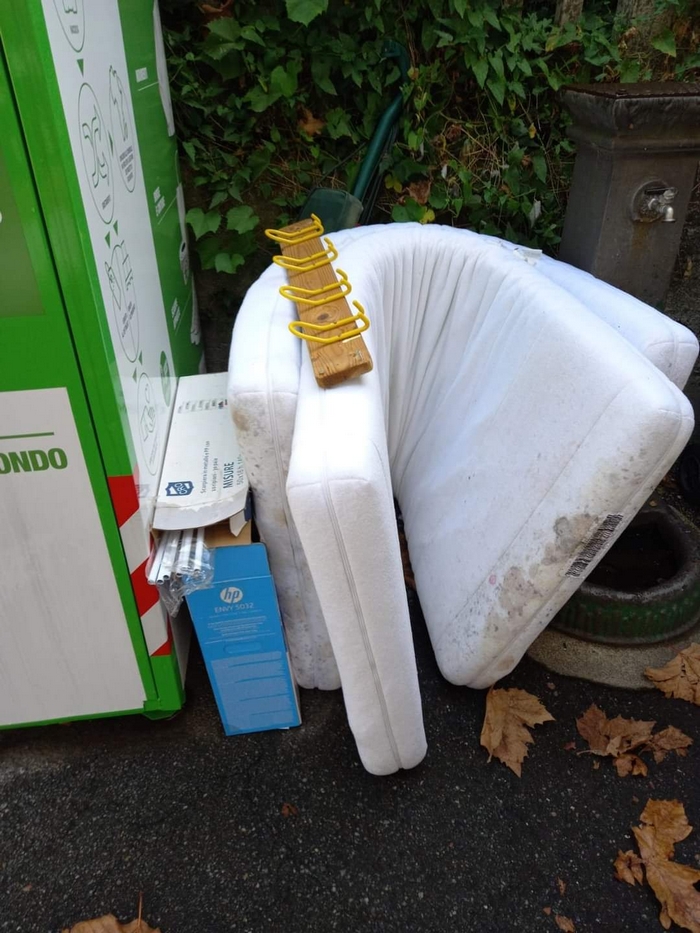 Il risultato di questo disordine lo si vede nelle fotografie, scattate oggi, che mostrano una situazione se possibile peggiore dell’anno scorso. Oltre a plastica e sacchi neri in piazzale Sant’Ambrogio si trovano ingombranti quali materassi e una batteria esausta.