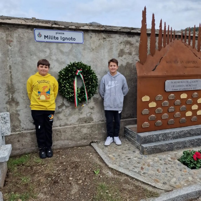 CAMBIASCA - 04-11-2023 -- S’è tenuta stamane a Cambiasca la doppia cerimonia che, approfittando della ricorrenza del IV novembre, Giornata nazionale delle Forze armate e dell’Unità d’Italia, ha visto l’Amministrazione comunale intitolare un piazzale a Norma Cossetto e inaugurare il monumento al milite ignoto. Dopo la celebrazione della messa a suffragio di tutti i caduti e la deposizione d’una corona floreale in piazza, il corteo s’è spostato nel piazzale che è stato intitolato alla giovane italiana uccisa nella notte tra il 4 e il 5 ottobre 1943 a Villa Surani, a Istria. Vittima delle foibe, è stata insignita della medaglia d’oro al valor civile dal presidente della Repubblica. La mattinata si è conclusa con l’inaugurazione del monumento al milite ignoto e la consegna dell’omaggio che il Comitato 10 Febbraio di Verbania ha voluto conferire al comune di Cambiasca: il francobollo commemorativo di Norma Cossetto.