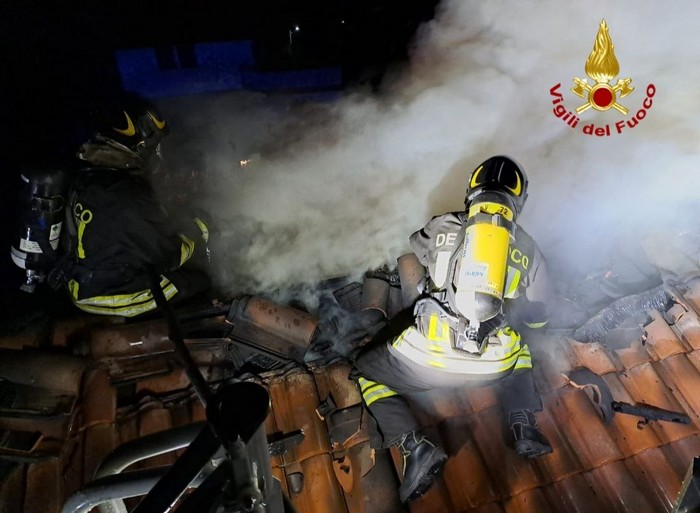 BAVENO - 26-11-2023 -- Due squadre del comando provinciale dei vigili del fuoco e una squadra del distaccamento di Stresa hanno lavorato quattro ore, questa notte, per spegnere le fiamme che hanno devastato metà tetto di un’abitazione di due piani di via alle Cave, a Baveno. L’allarme è arrivato attorno alla mezzanotte. Il fuoco nella villetta è partito probabilmente dalla canna fumaria collegata a una stufa e s’è esteso a circa 70 metri quadrati di copertura, danneggiando seriamente anche il legname della struttura portante. I pompieri sono riusciti a salvare metà tetto separandolo dalla parte aggredita dal fuoco. Il locale mansardato è stato dichiarato inagibile.