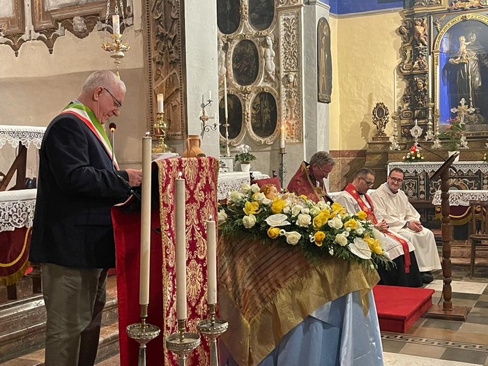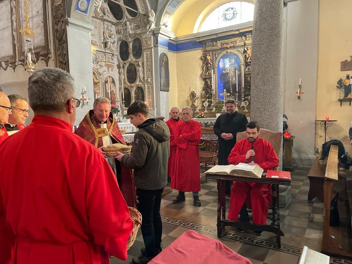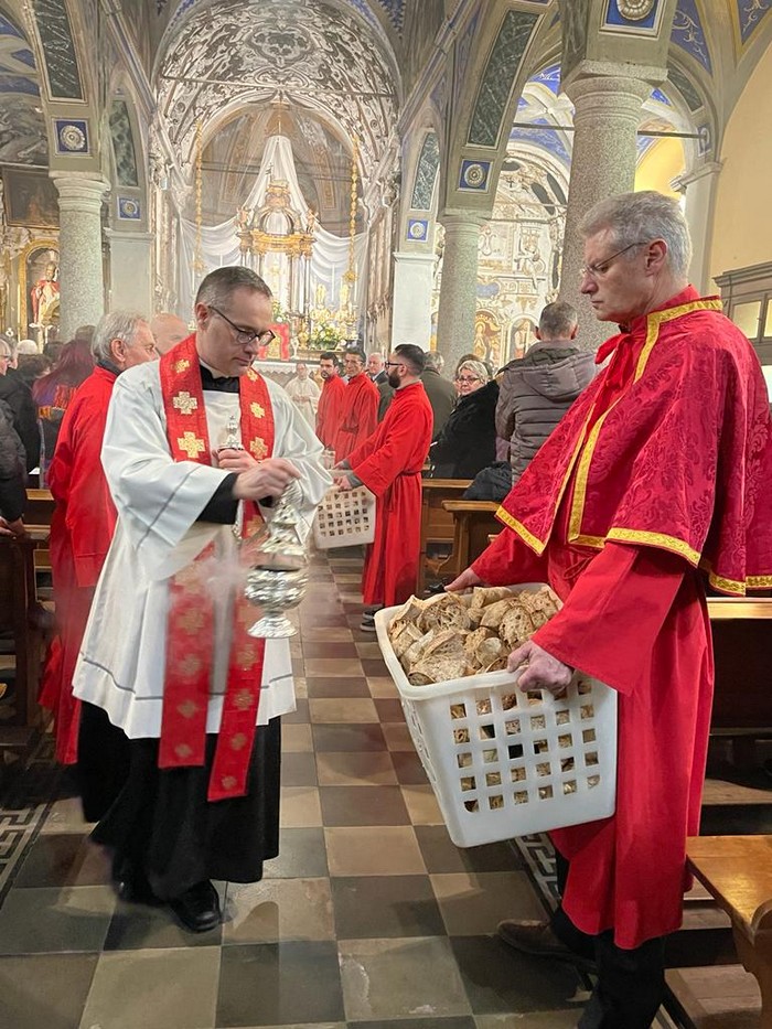 COSSOGNO - 26-12-2023 -- Sono il gruppo comunale di protezione civile e Lino Feliciani i destinatari del Toc d’argento tributato dal comune di Cossogno a chi s’è distinto per la comunità. Oggi, giorno di Santo Stefano, come da tradizione il borgo alle porte della Val Grande s’è radunato per una ricorrenza religiosa e popolare che affonda le radici nel tempo. Risale al Medioevo la tradizione di distribuire un’elemosina comunitaria, in particolari periodi dell’anno, a favore di chi aveva poco. Veniva così racconto il pane e un pezzo -toc, in dialetto- benedetto veniva distribuito dopo la messa. La tradizione s’è ripetuta oggi. Nella chiesa di San Brizio si sono ritrovati i cossognesi che hanno assistito alla celebrazione eucaristica seguita dall’annuncio dei vincitori del Toc d’argento, che sarà poi consegnato nel corso di una cerimonia a fine febbraio.