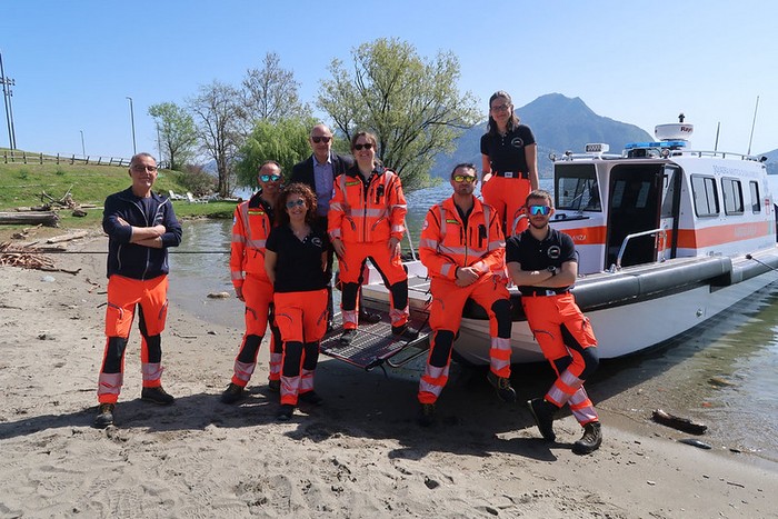 VERBANIA - 21-04-2024 -- È stato don Riccardo Cavallazzi, responsabile dell’oratorio San Vittore, a impartire la benedizione che ieri ha visto la Squadra nautica di salvamento inaugurare ufficialmente due nuove idroambulanze. L’ente di soccorso nato a Verbania nel 1987 con lo scopo di prestare soccorso, anche nel lago e in acqua, è oggi una realtà consolidata e strutturata. Inserito nell’Anpas, accreditato col servizio del 118, conta su 215 volontari, di cui la metà donne, e un parco mezzi che alle cinque ambulanze, alle quattro auto mediche attrezzare e ai due veicoli per la protezione civile ha aggiunto ieri due nuove idroambulanze.