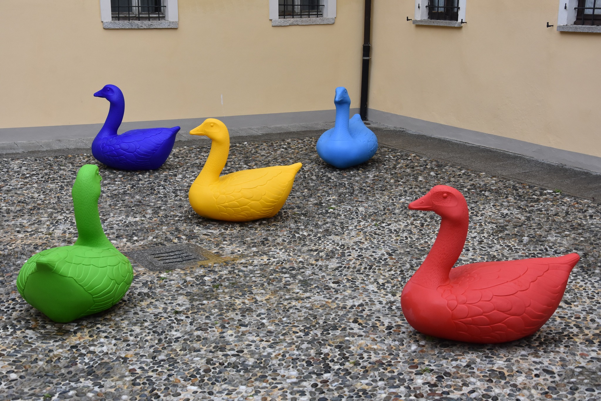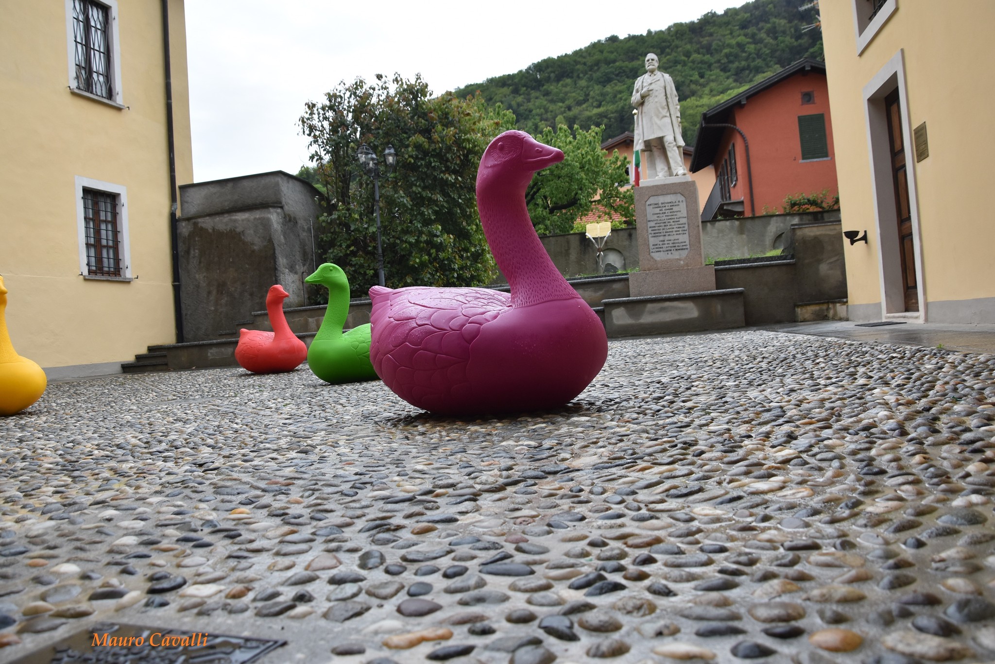 CANNOBIO - 3-5-2024 -- Gli animali giganti di Cracking Art all'assedio di Cannobio. Una colorata fauna (di "sana" plastica riciclata) assedia già da qualche giorno la cittadina lacustre: un coccodrillo a riva, gatti nei cortili, lumache oltre misura sui muretti, lupi nelle aiuole e poi rane, un elefante e tutto il fantasioso bestiario del collettivo artistico le cui installazioni che parlano di ecologia con un sorriso, tanto successo riscuotono nel mondo. “Siamo uomini del presente e vogliamo che il nostro lavoro interpreti le problematiche contemporanee” si legge nel manifesto della Cracking Art, dove la tematica centrale di questo tempo è proprio il rapporto distorto dell'uomo col suo ambiente, ecco che allora la pacifica "invasione" della plastica modellata in forme animali, diventa occasione di riflessione. “Favole urbane” è il titolo dell'installazione che a Cannobio occuperà i suoi luoghi emblematici e poetici fino al 10 ottobre 2024.