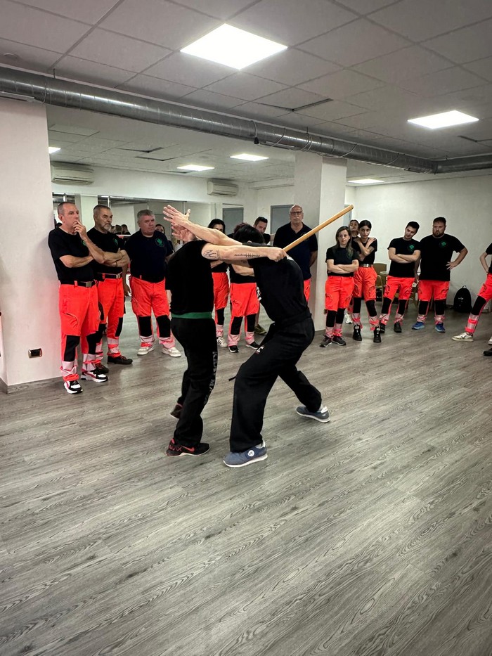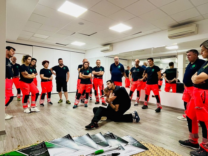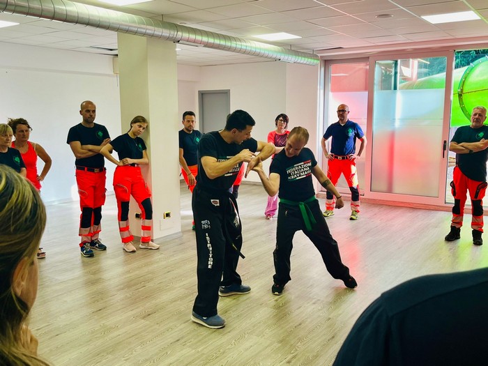 VERBANIA - 05-07-2024 -- Il loro compito è aiutare, assistere e prestare soccorso sanitario ma, visti i tempi, devono essere pronti a tutto. Domenica la Croce Verde di Gravellona Toce ha organizzato e curato un corso di difesa personale per volontari e operatori mirato a impratichirsi delle più elementari tecniche di difesa contro le aggressioni. A impartire le lezioni è stato Marco Amatucci, maestro di Krav Maga, arte marziale particolarmente adatta nel confronto corpo a corpo, che ha illustrato le tecniche per opporsi a chi aggredisce, a mani nude o con armi.