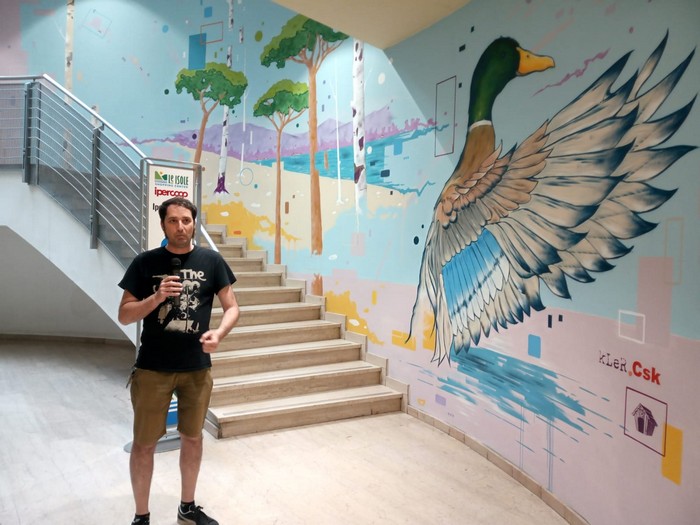 È ispirato alla natura anche il murale di Refreshink, che ha riprodotto, come disegno, un mosaico custodito al Man, il museo archeologico di Napoli. Cinquantatré anni, di Arona, dopo il diploma in grafica Magnoli è passato alla serigrafia per poi approdare, negli anni ‘90, alla street art.