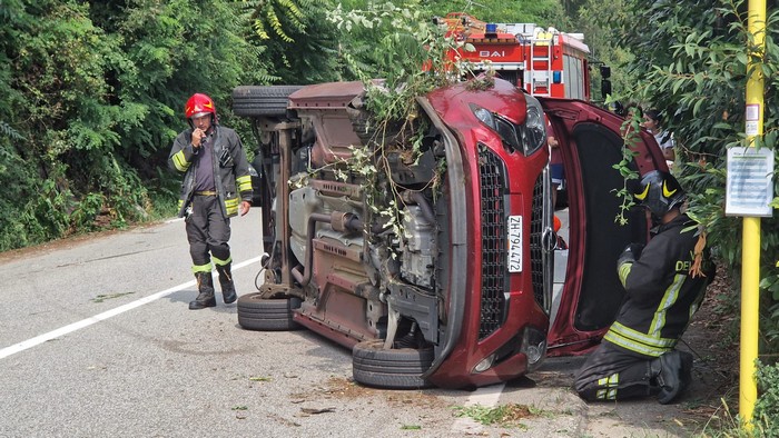 OGGEBBIO - 01-09-2024 -- La strada statale 34 del Lago Maggiore è bloccata dal primo pomeriggio di oggi a causa di un incidente stradale. All’inizio di Oggebbio una vettura di turisti svizzeri con targa di Zurigo s’è ribaltata, fermandosi a bordo carreggiata, adagiata su un fianco. Illesi i quattro occupanti. Sul posto i vigili del fuoco e il 118 oltre alle forze dell’ordine.