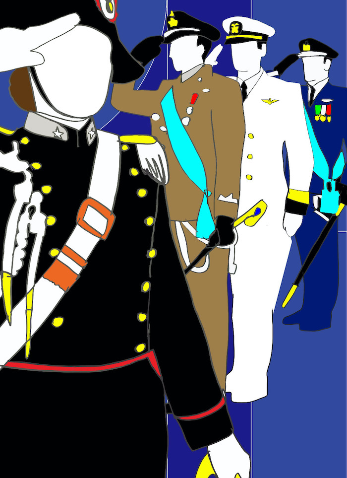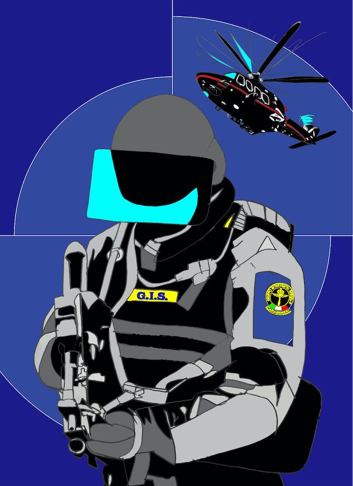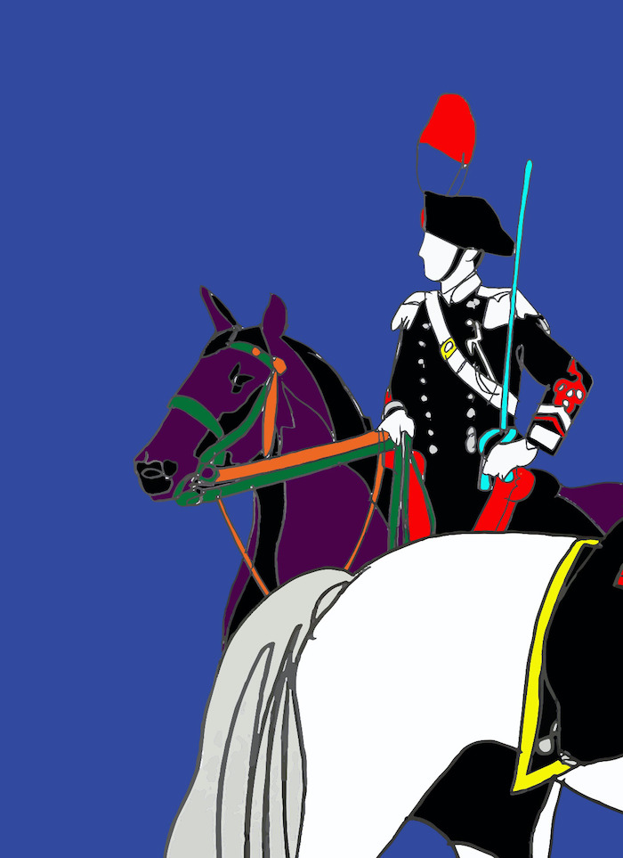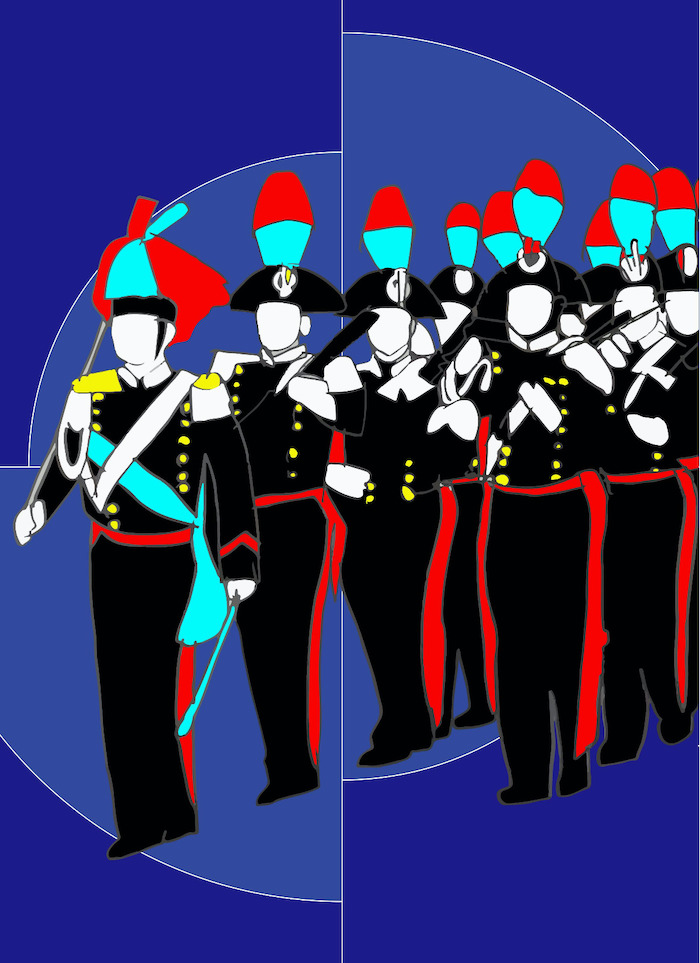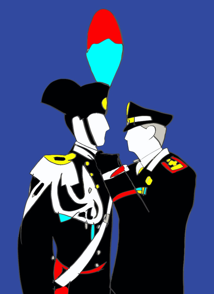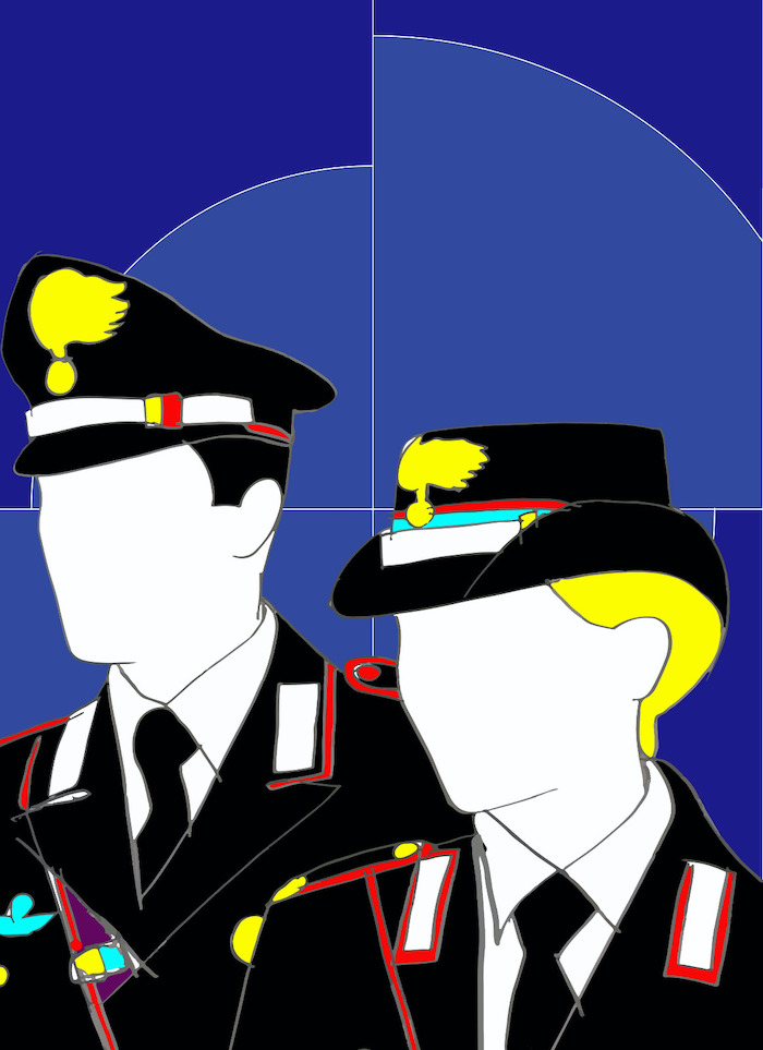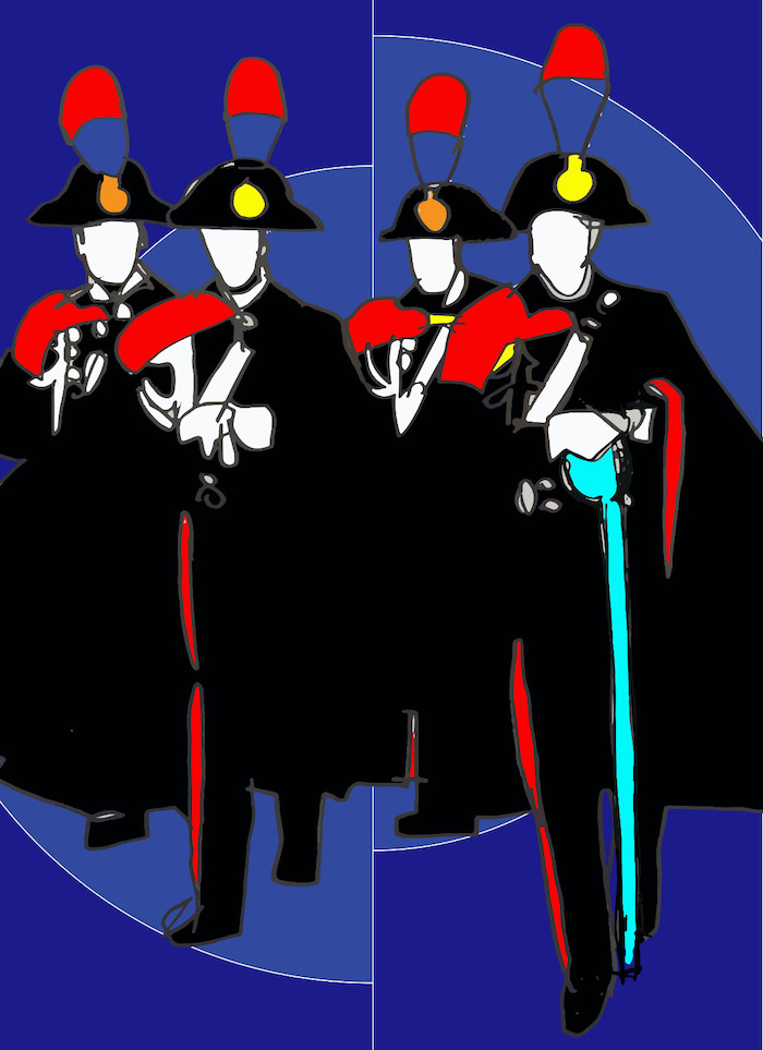 Le tavole, invece, raffigurano, nell’inconfondibile stile pop di Marco Lodola, carabinieri delle varie articolazioni dell’Arma e figure giovanili, nella versione cartacea delle “sculture luminose” che lo hanno reso celebre nel mondo.
