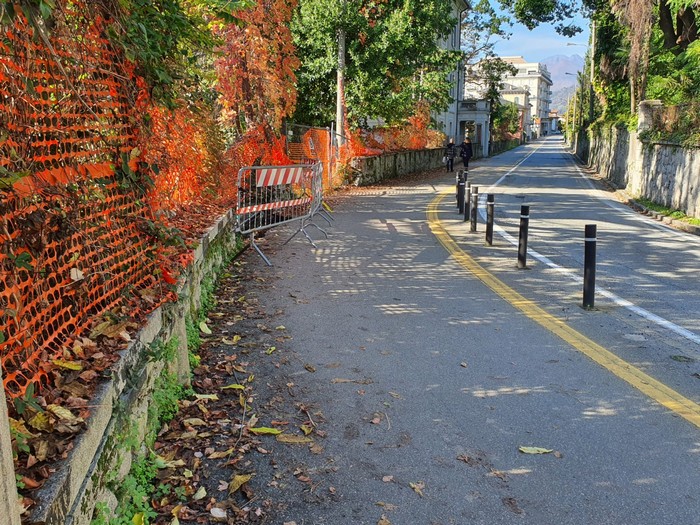 VERBANIA - 06-11-2024 -- Un piccolo smottamento, con una porzione di strada (quella adibita a pista ciclabile) sprofondata e inagibile. È accaduto stamane in via Vittorio Veneto a Pallanza, proprio alla curva dell’Eden. Nel punto in cui inizia il golfo Borromeo è in fase di ristrutturazione la Villa Ceretti, il cui cantiere, iniziato nel 2017, è fermo ormai da parecchio tempo. Laddove, oltre il cancello, la proprietà lambisce la strada, un muretto ha ceduto provocando lo sprofondamento di una striscia di asfalto. L’immobile appartiene a una società con sede a Como. I tecnici comunali hanno effettuato un sopralluogo già in mattinata. La parte inagibile è transennata e la ciclabile percorribile. Si è in attesa dell’ordinanza di ripristino dei luoghi.