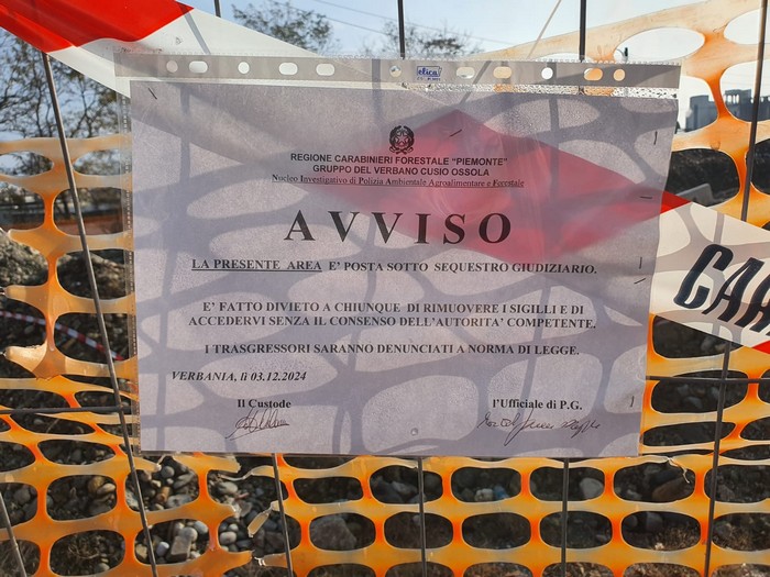 VERBANIA - 16-12-2024 -- Sigilli all’area di cantiere del lungolago di Intra. Porta la data del 3 dicembre il provvedimento, disposto dai carabinieri forestali del Nipaf – Nucleo investigativo di polizia ambientale agroalimentare e forestale, di sequestro giudiziario di una parte dell’area di stoccaggio inerti collegata ai lavori della passeggiata di corso Mameli e di piazza Ranzoni, il cui contratto è stato revocato dal comune di Verbania. L’Arma ha contestato ai responsabili del sito la violazione delle norme sul trattamento e lo smaltimento dei rifiuti, che hanno risvolti penali, per una parte del materiale accumulato in loco e che, secondo i forestali, sarebbe dovuto finire in discarica. Ora si attende che Arpa analizzi i campioni prelevati e che accerti l’origine del materiale, anche allo scopo di stabilire i termini del ripristino ambientale.