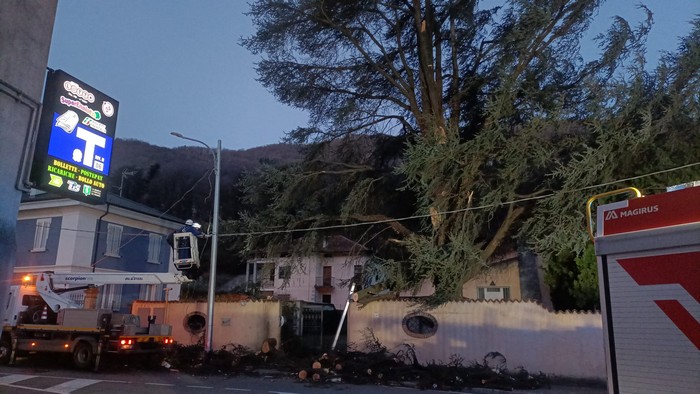 CANNOBIO - 20-12-2024 -- Il forte vento che dalla notte soffia nel Vco ha causato diversi problemi, che hanno richiesto l’intervento dei vigili del fuoco. Rami di un albero sono caduti sulla statale 34 del Lago Maggiore, in zona Carmine di Cannobio, ma il problema maggiore s’è verificato a Crusinallo. Attorno alle 4 un cedro di una villa privata affacciato sulla strada statale 229 del Lago d’Orta s’è spezzato e una parte s’è schiantata sulla strada. Nel cadere i rami hanno tranciato la linea elettrica, provocando un’interruzione che è durata più ore. Sul posto sono intervenuti i vigili del fuoco e la strada è stata chiusa. L’intenso traffico del mattino sulla direttrice Omegna-Gravellona Toce è stato deviato verso la località Verta, con code e rallentamenti.