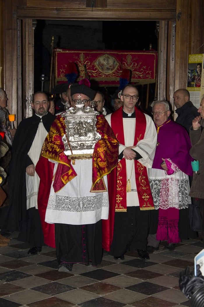 s’è ripetuta. Come accade da 495 anni Cannobio ha celebrato il miracolo della Sacra Costa, con la cerimonia religiosa nella Collegiata di San Vittore e la processione che s’è snodata per le vie del centro storico rischiarato da diecimila lumini. La festa dei “lumineri” ha visto ancora una volta una foltissima partecipazione. Nonostante il rigido inverno e le temperature polari Cannobio s’è affollata di fedeli e curiosi che, dopo aver accompagnato la reliquia sino al Santuario della Pietà, hanno cenato nei vari locali con il piatto tipico della tradizione a base di luganighe.