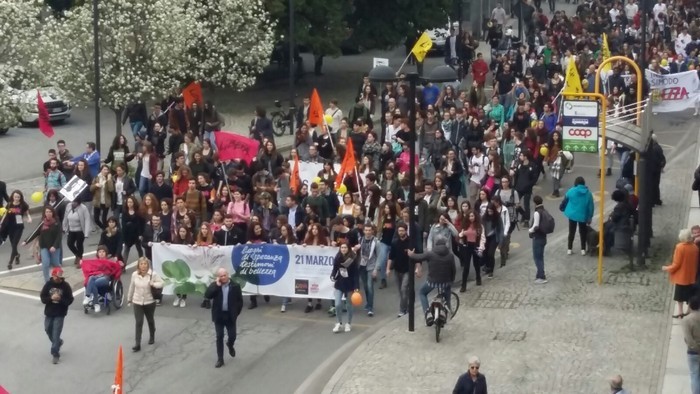 per dire no alla mafia. Verbania stamane ha subito la pacifica invasione di tutti coloro che, rappresentanti istituzionali, studenti e semplici cittadini, hanno raccolto l’appello di Libera Piemonte per celebrare a livello piemontese la XXII Giornata dell’impegno in ricordo delle vittime innocenti delle mafie. La partecipazione è stata altissima, superiore alle cinquemila persone attese. Il corteo s’è snodato da Intra a Pallanza, con partenza in piazza Ranzoni e arrivo in piazza Garibaldi, dove sul palco allestito sul lungolago (guarda il video) sono intervenuti i relatori ufficiali.