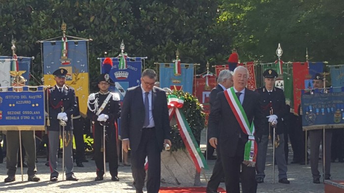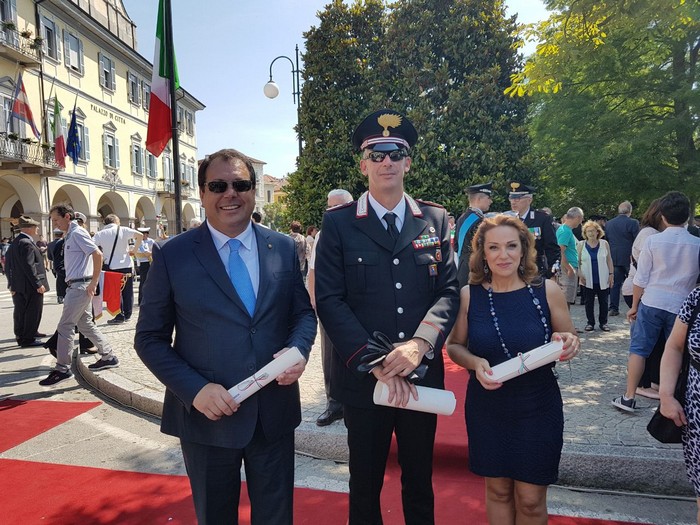 Al termine degli interventi ufficiali, ai quali va aggiunto oltre ai citati quello del presidente della Provincia Stefano Costa, il prefetto Olita e i rappresentanti istituzionali locali hanno consegnato le cinque onorificenze al merito della Repubblica italiana. sono stati nominati cavalieri con decreto del presidente della Repubblica Sergio Mattarella la verbanese Graziella Caruso, presidente dell’Angsa – l’associazione dei genitori di soggetti autistici; il dottor Fabio Di Stefano, cusiano, primario di Geriatria dell’Asl; Dino Della Maddalena, di Baceno, ex amministratore locale impegnato negli Aib. Carlo Ricchetti, già manager dell’Alessi e dirigente sportivo della Federazione italiana canoa e kayak; e il luogotenente dei carabinieri Massimo Verzotto, ufficiale della sezione di pg del tribunale di Verbania sono diventati ufficiali. L’ossolano Antonio Tedeschi ha ritirato la medaglia d’oro conferita agli ex internati, la stessa destinata al vigezzino Carlo Besana e al mergozzese Fedele Rabattoni, che l’hanno ricevuta alla memoria.