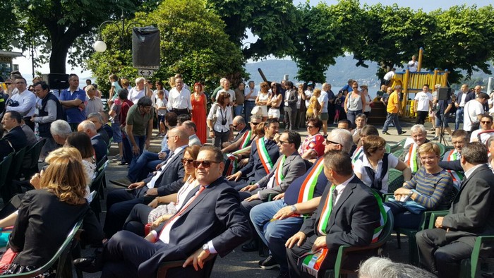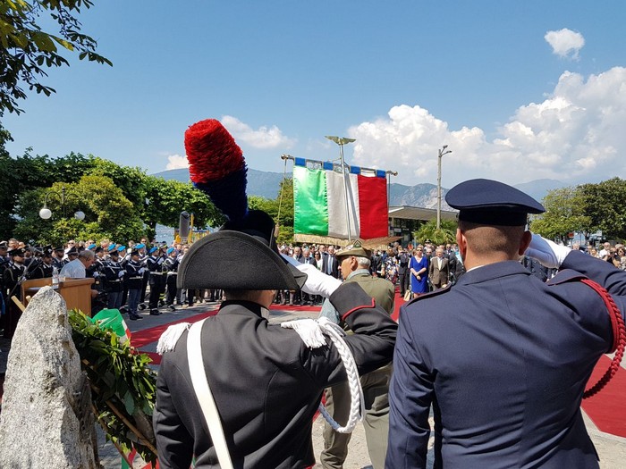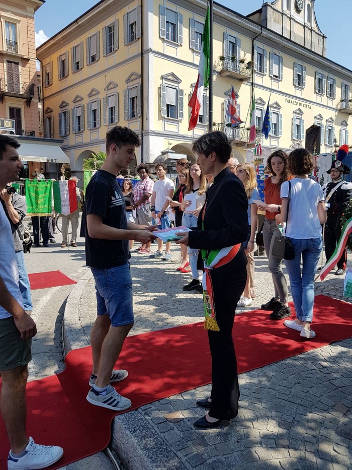 tra gli ex internati insigniti della medaglia d’oro e i neodiciottenni che hanno ricevuto in dono una copia della costituzione. È un po’ questa la copertina della Festa della Repubblica e delle Forze Armate celebrata questa mattina a Pallanza. Sul lungolago le massime autorità provinciali si sono ritrovate per dare continuità a quella ricorrenza “rispolverata” a inizio anni Duemila dall’allora presidente della Repubblica Carlo Azeglio Ciampi come occasione per affermare e ribadire la propria identità e appartenenza, i propri valori. L’ha ricordato nel suo discorso il vicepresidente della Regione Aldo Reschigna, che ha sottolineato come sia compito degli amministratori riavvicinare le istituzioni alla gente, ripristinarne la fiducia dei cittadini. Lo stesso concetto, proiettato sulla realtà verbanese e detto in maniera più diretta, è venuto dal sindaco di Verbania Silvia Marchionini: “se non abbiamo voglia di impegnarci chiediamoci il perché. Serve impegno, altrimenti si rischia solo confusione”. Il messaggio rivolto ai giovani, e non solo alla quarantina di neomaggiorenni verbanesi (su 256) che hanno ritirato la loro copia della Costituzione, è stato anche quello del prefetto Iginio Olita, che ha rimarcato la grande partecipazione dei giovani di Libera alla sfilata del 21 marzo.