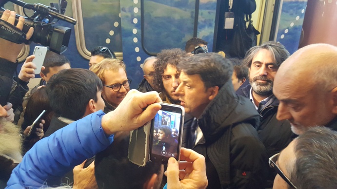 Questa è la cronaca della tappa verbanese del leader del Pd, accolto da una piccola folla composta perlopiù da rappresentanti delle forze dell’ordine e da iscritti al partito, con pochissimi contestatori – qualcuno ha tentato di criticare ma s’è sentito a malapena – e non troppi fan, persone comuni che al grido “Matteo, Matteo!” hanno cercato di stringergli la mano e farsi salutare. Di folclore lo sparuto gruppo dei Giovani democratici – una mezza dozzina – che agitando le bandiere prima che arrivasse il treno hanno intonato un “chi non salta un grillino è…”.